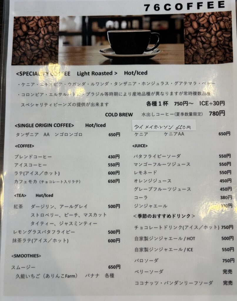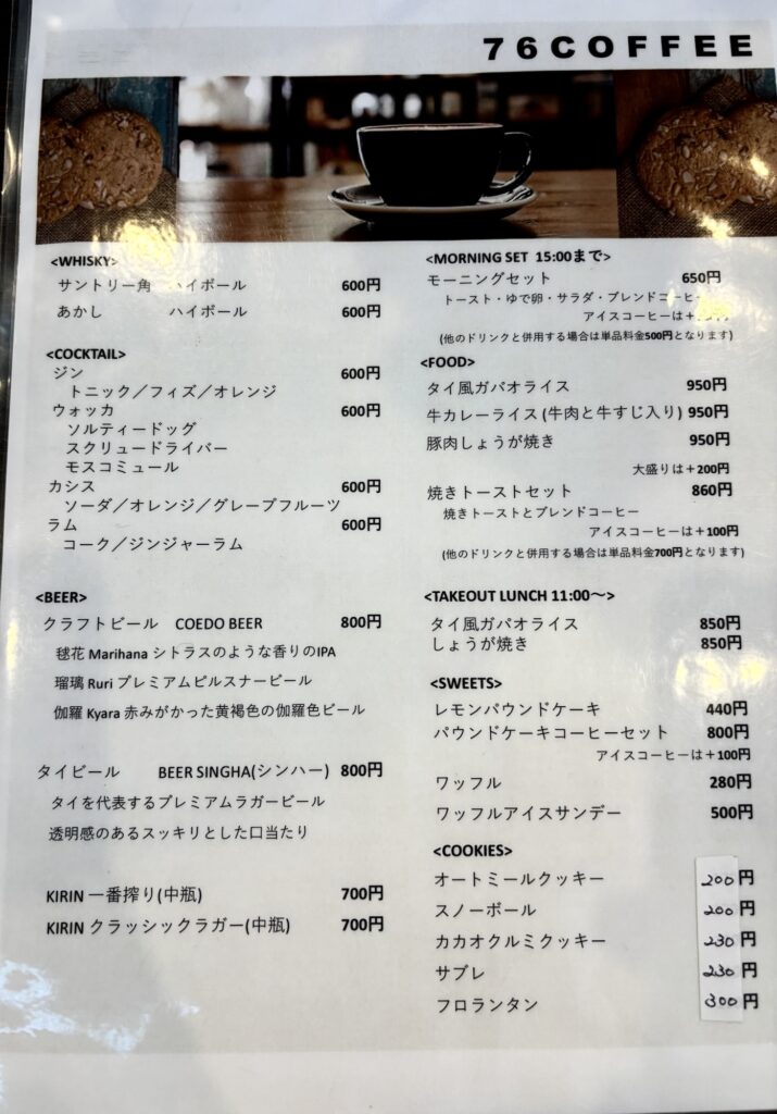 76COFFEE は「ただのカフェ」というより、“本格的なコーヒーが味わえるほっとひと息つける場所” でした。