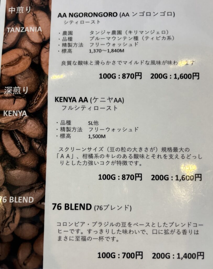 コーヒー豆の販売もしていたから、おうち用に買って帰るのもアリだな〜と思いました。
