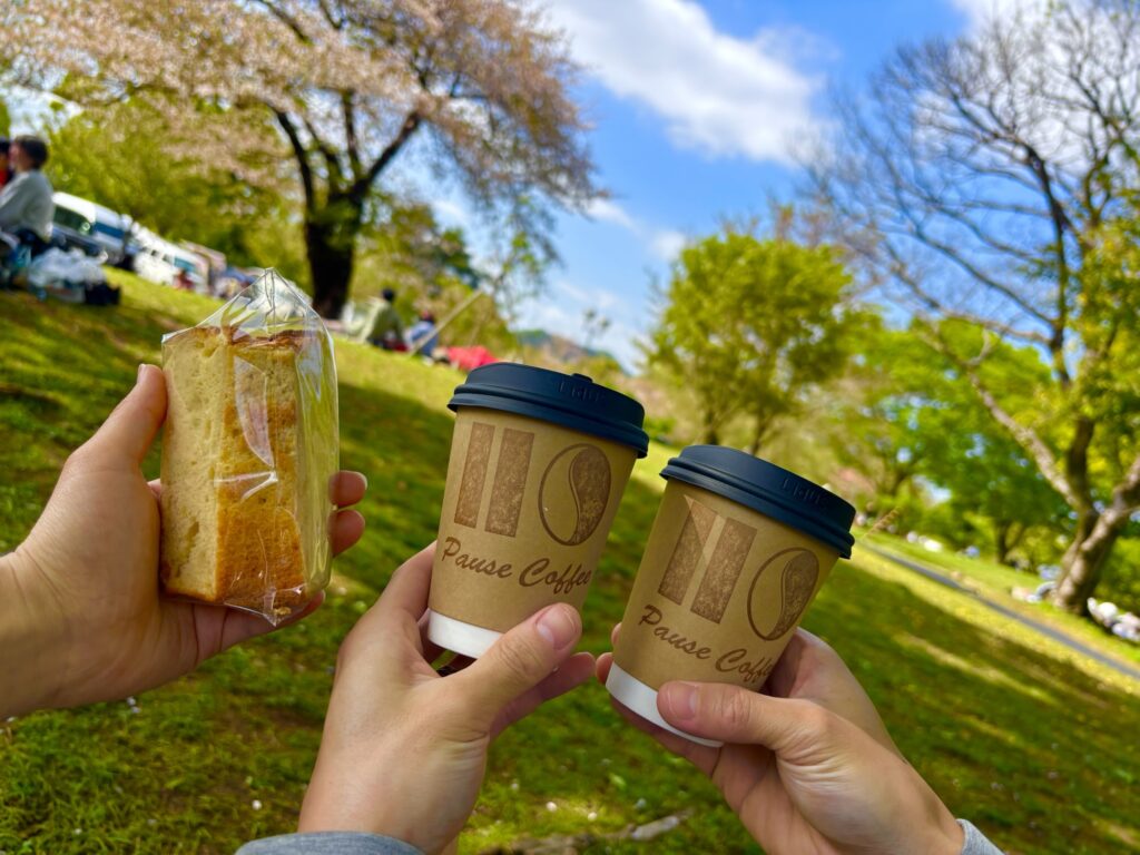 公園のギリギリ桜が咲いているところで、デザートタイム。