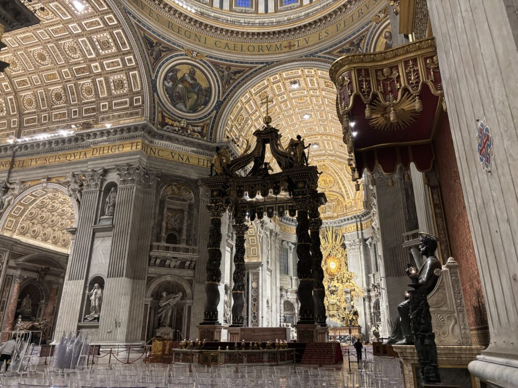 お目当てのサンピエトロ大聖堂は、建物の外も中もすごく豪華で、見応え抜群でした。