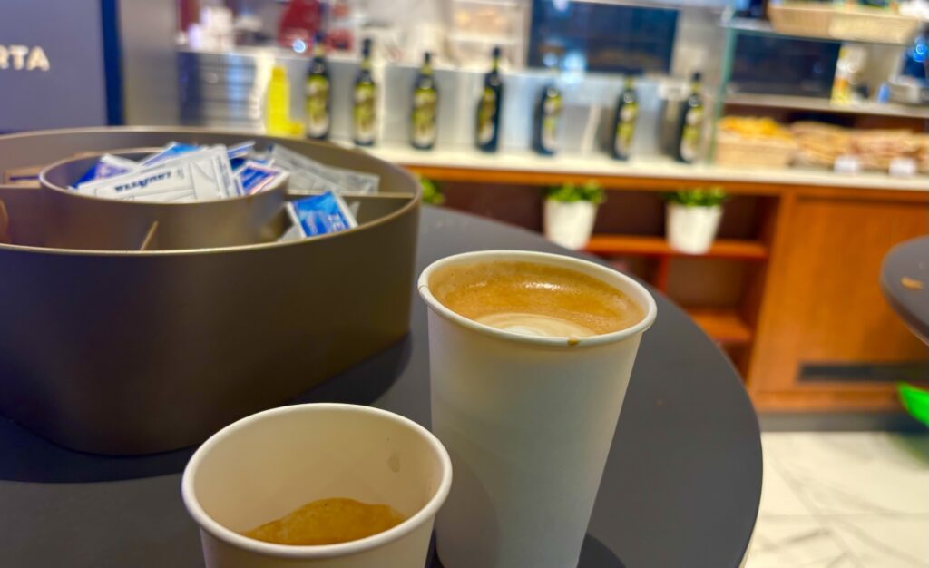 時間があるので駅の中にあるカフェでエスプレッソとカプチーノを注文
