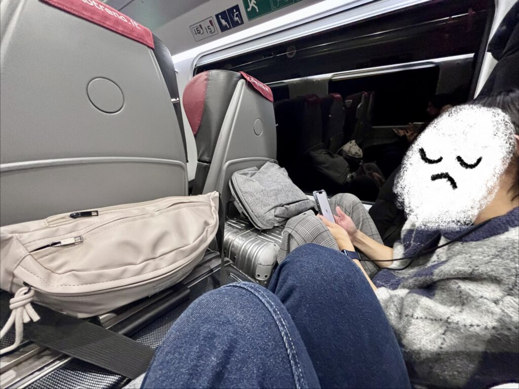 スーツケースを置く場所が無く、座席に詰め込みました笑