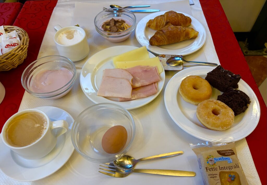 色々な種類があって、イタリアらしいチーズやハム、スイーツもあり大満足の朝食が頂けました!