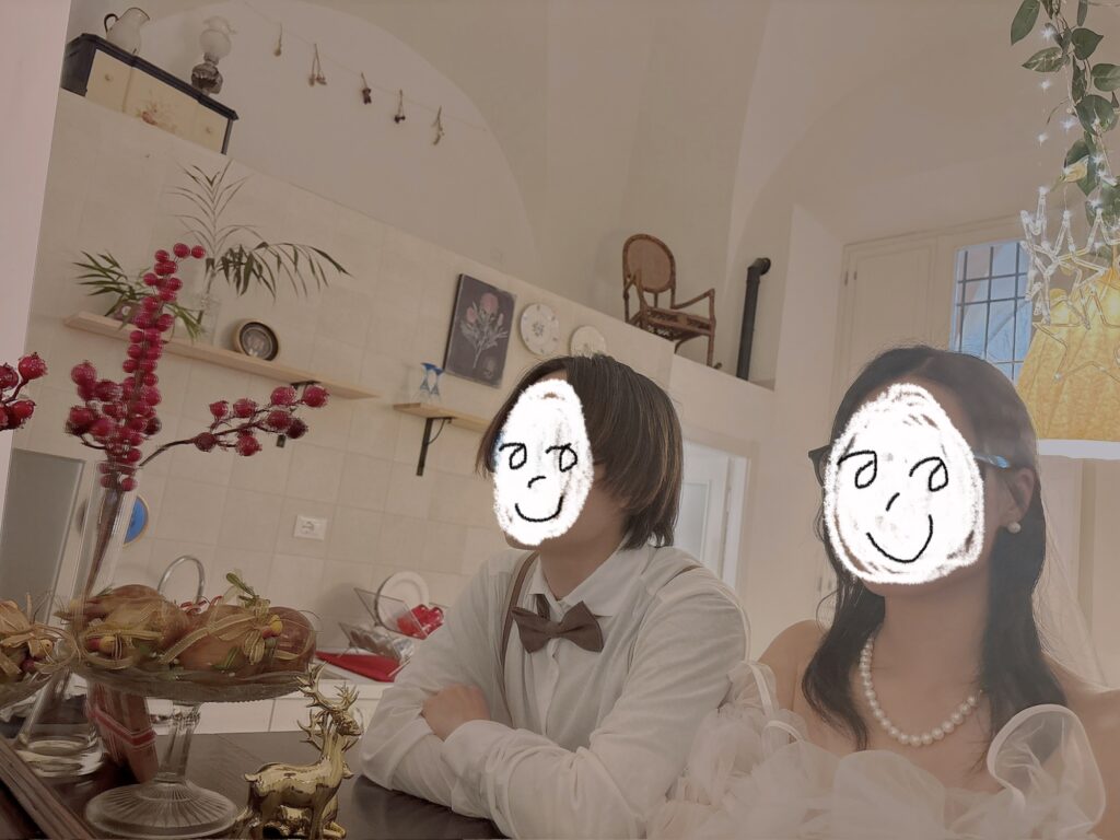 そして、かわいいアパートを予約したので、そこでセルフウエディングフォトをとります!
