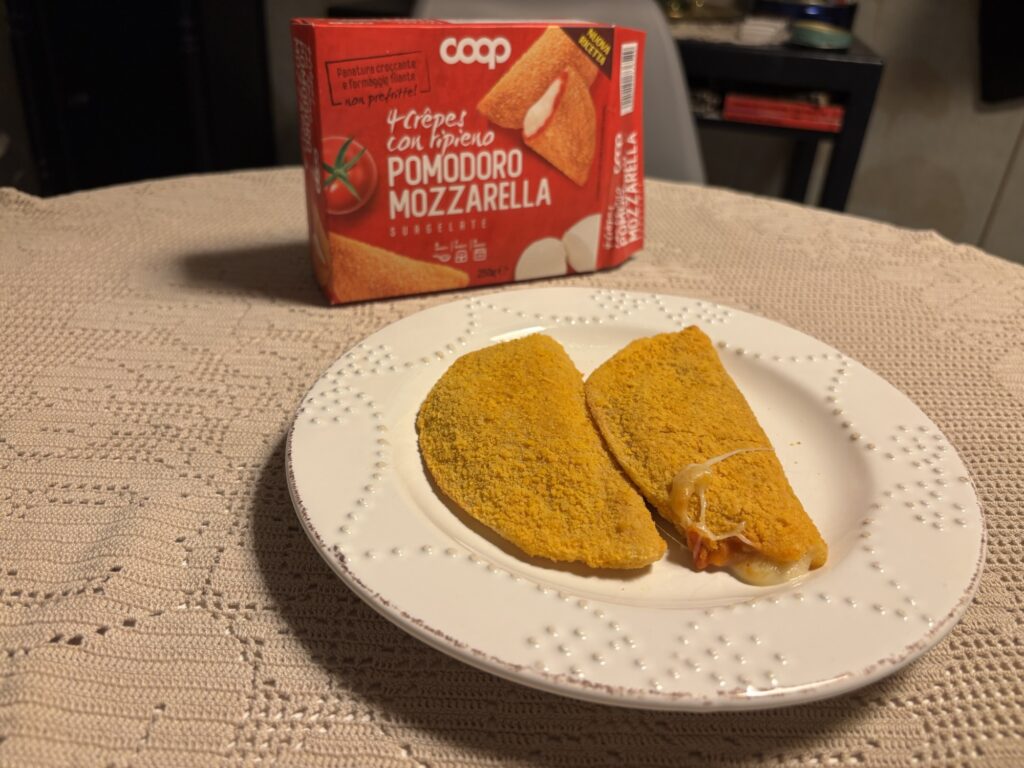 冷凍食品で、チーズとトマトのフライがあったのでそれを買って食べました。