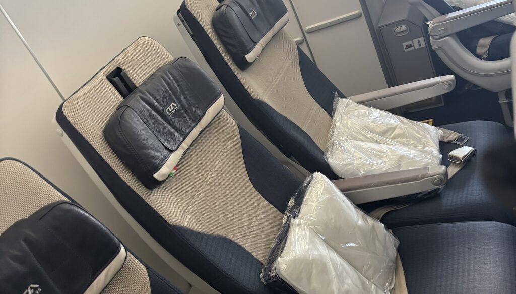 ITA AIRWAYSの機体も古さはあまり感じず、足元もそこまで狭くはなかったです。